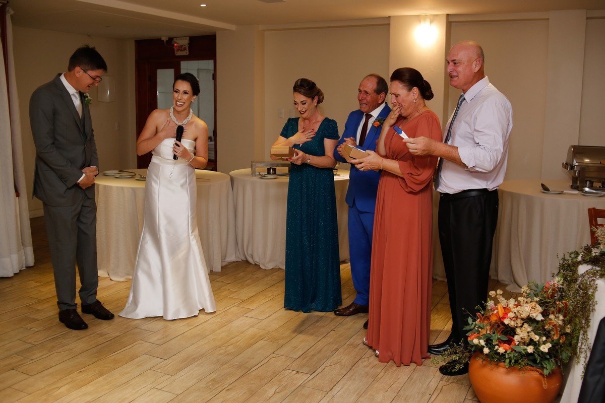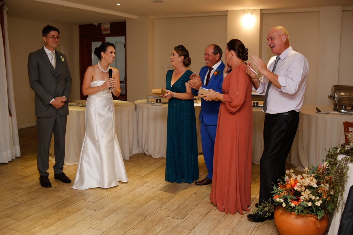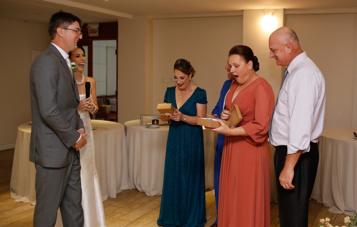 Já vou logo avisando, vamos ter momentos de fortes emoções aqui meus amigos. Durante os preparativos os dois estavam bem tranquilos, contando os minutos para o grande momento chegar. Chegando a cerimônia, vocês podem perceber que a emoção tomou conta, com várias imagens de alegria e sentimento e na recepção eles pegaram todos de surpresa anunciando que a família vai aumentar com a chegada do primerio filho, foi um momento de muita emoção.