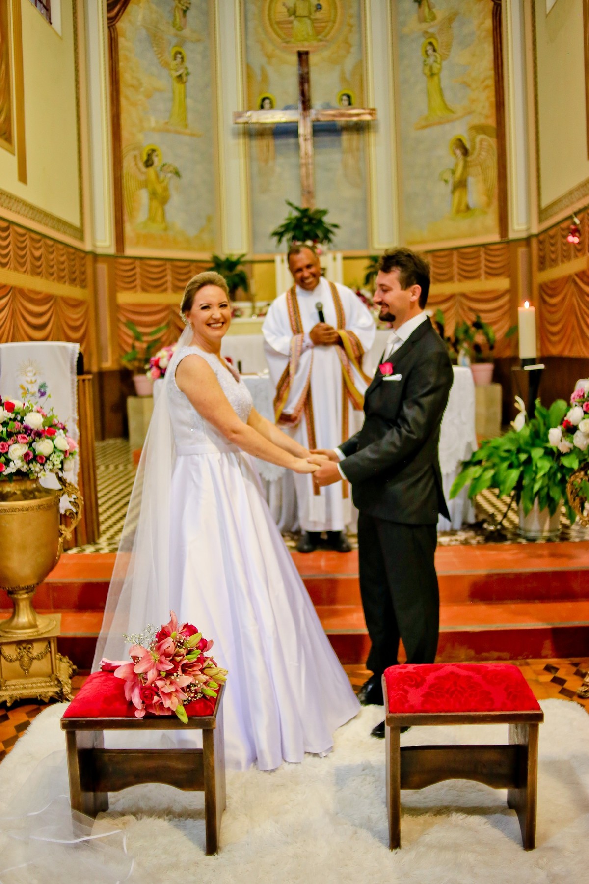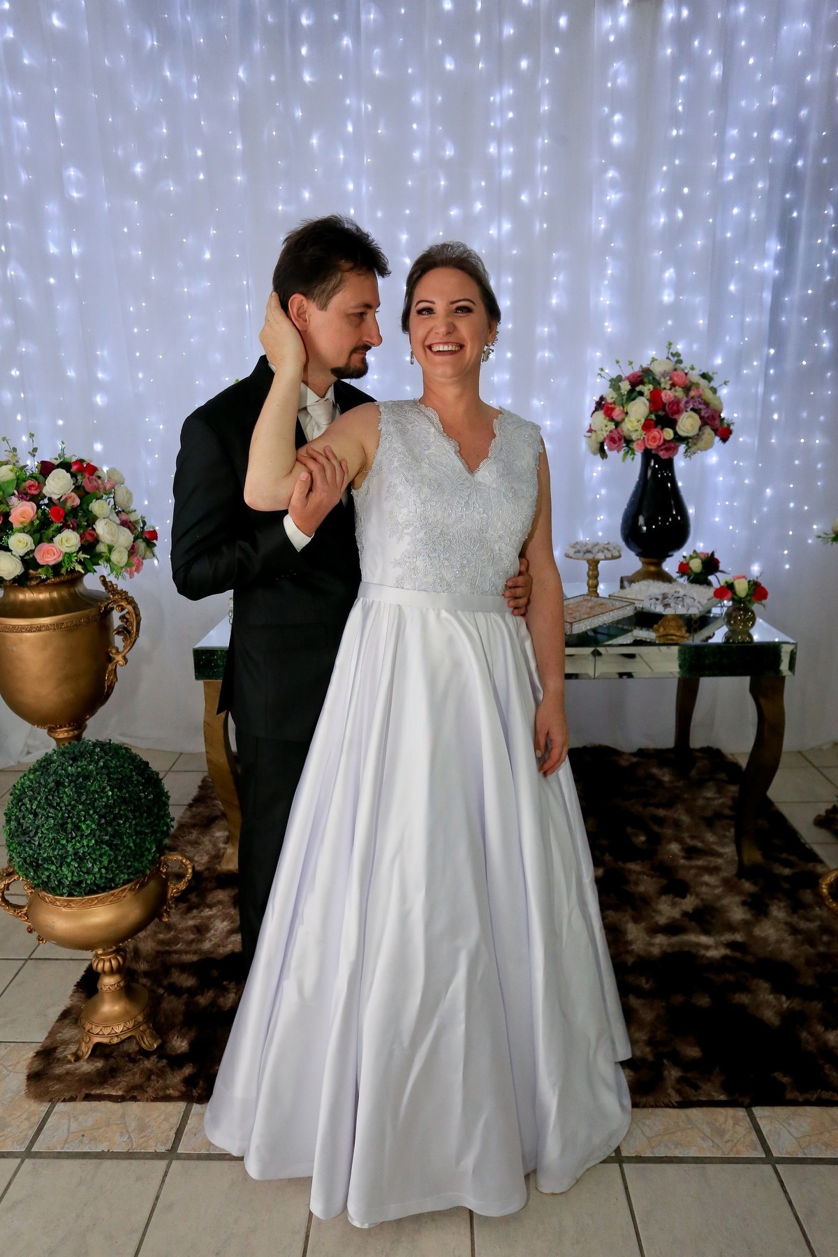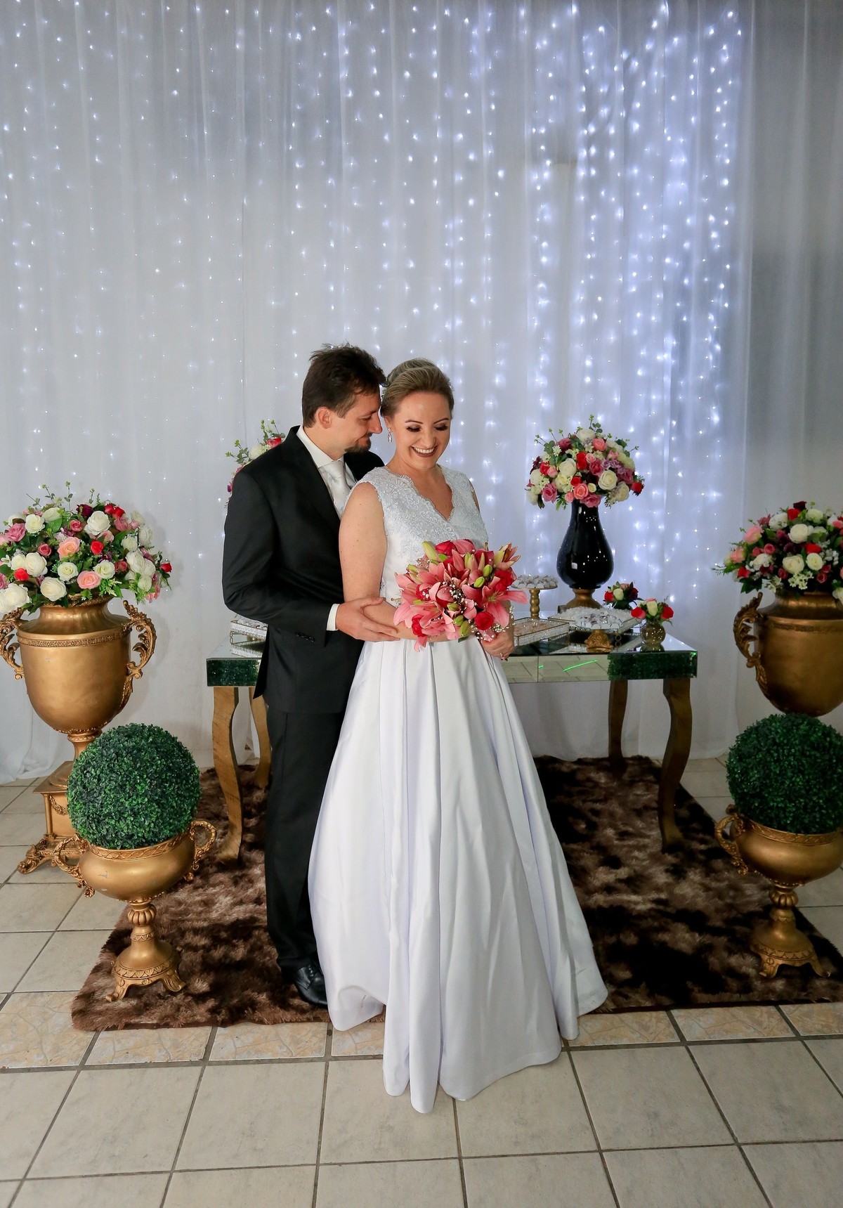Eles viveram um dos dias mais incríveis de suas vidas, o tão planejado casamento. Muito queridos e apaixonados, o casamento foi repleto de sentimentos e emoções, da forma como eles sonharam, reunido todos os seus amigos e familiares. É nítido nas fotos durante a cerimônia, o brilho no olhar dos dois, vivendo os momentos do dia do casamento.